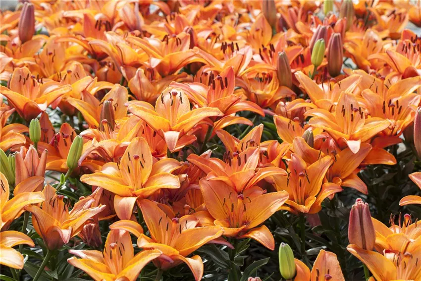 Lilien sind wundervolle Kombinationspartner im Beet. Neben Rosen und Stauden wirken sie sehr elegant. Damit sich die Blüten zur richtigen Zeit öffnen, sollten Sie Lilien im Frühjahr pflanzen.