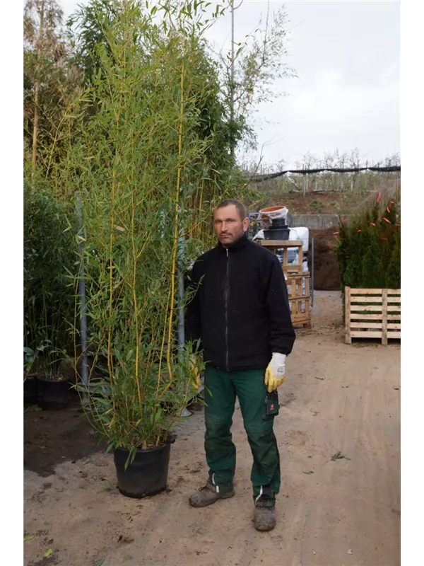 Beschreibung Mit lanzettlichen Blättern in hellgrün zeigt der Goldrohrbambus als wintergrüner Bambus seinen unverwechselbaren Charakter, der durch die in Knoten gegliederten, grüngelben Halme noch unterstrichen wird. Bei Wuchsgrößen von bis zu 4 m und Breiten bis etwa 3 m ist er ein buschig, dicht, horstbildend wachsender Gartenbewohner. Eine sonnige bis halbschattige Lage und durchlässige, humose, nährstoffreiche Erde sind dabei optimal für ein gesundes Wachstum.