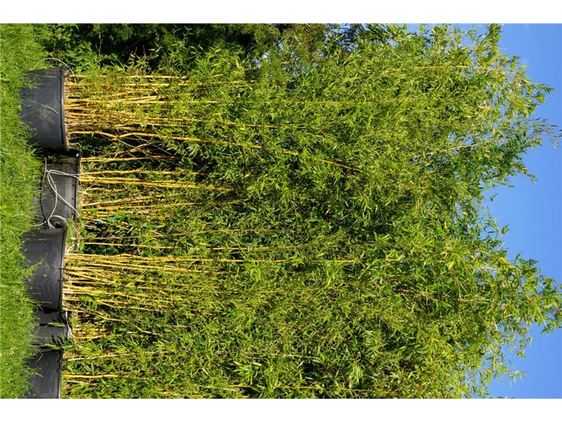 Wurzel Ausläuferbildend wachsend. Damit sich dieser Bambus nicht zu weit ausbreitet, kann eine Rhizomsperre gesetzt werden.