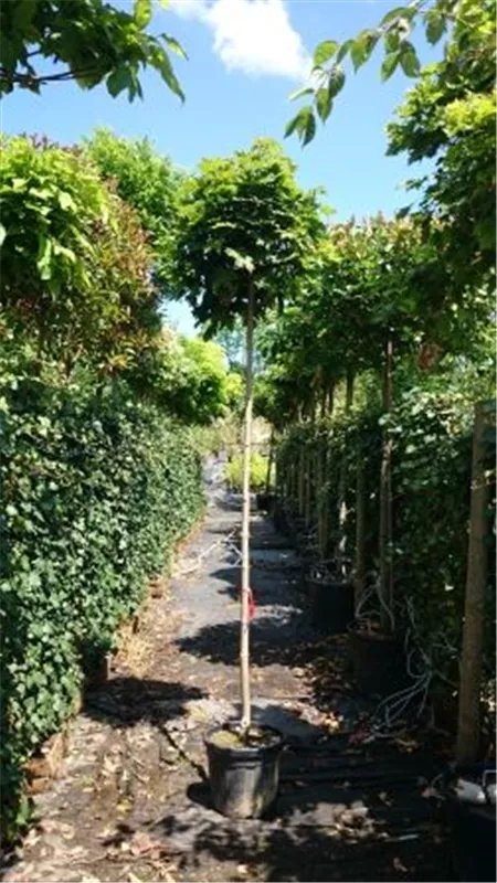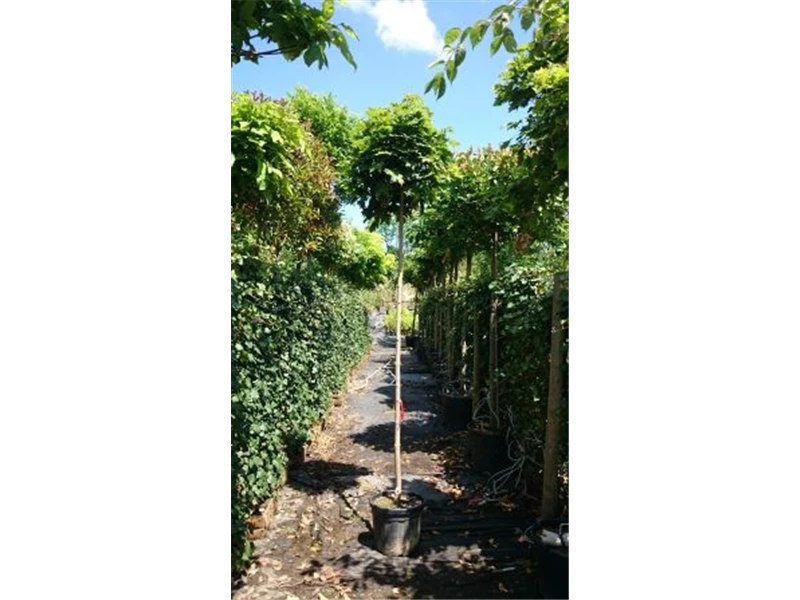Weitere Informationen Kleinerwüchsiger Hausbaum auf ca. 2m Stammhöhe.Mit flachrunder regelmäßiger Krone.