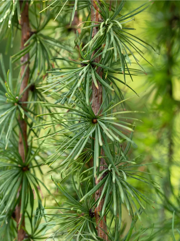 Die Hänge-Lärche 'Stiff Weeper' ist sommergrün.