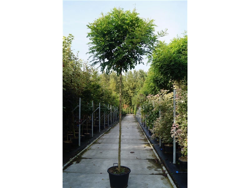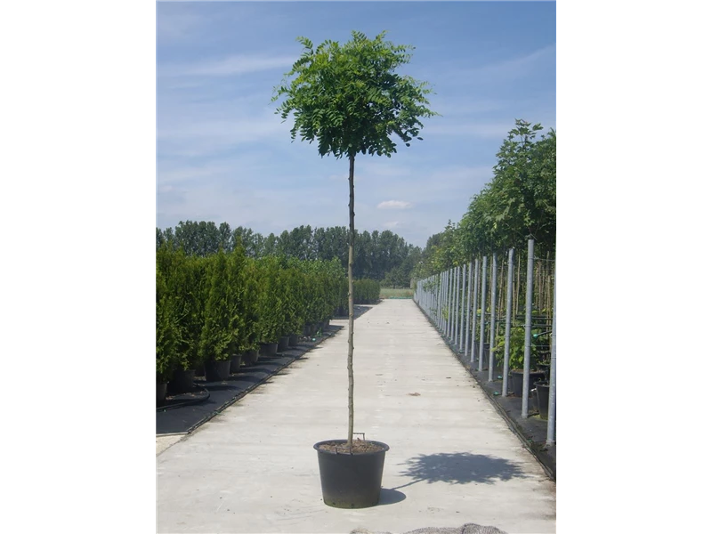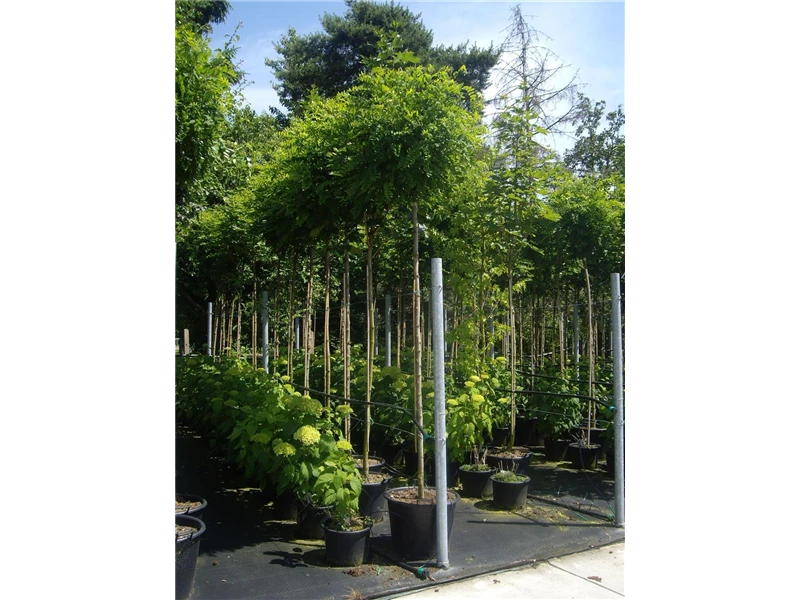 Weitere Informationen Kleinkugelige Kugelakazie, feinverzweigte, unbedornte Triebe. Gelbe Herbstfärbung. Blüht selten.
