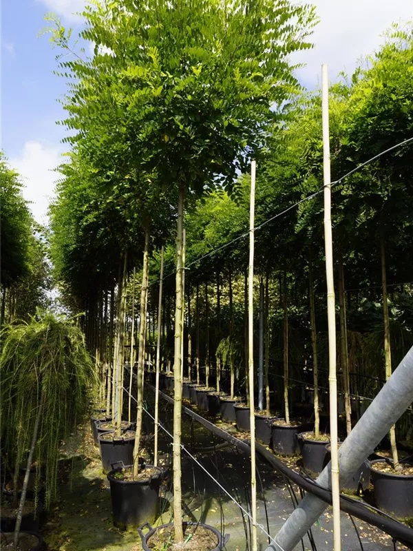 Wasser Eine regelmäßige und ausreichende Wasserversorgung gehören für Robinia pseudoacacia 'Umbraculifera' zu einem guten Standort dazu.