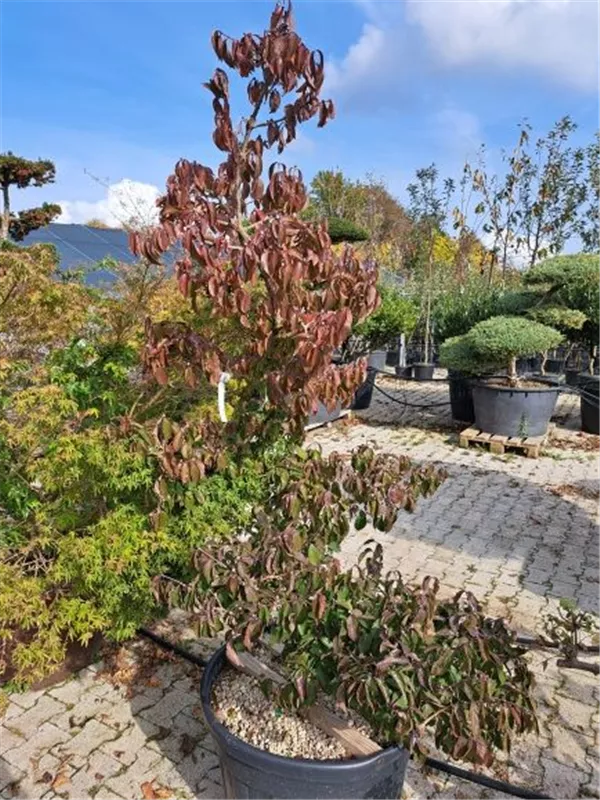 An einem sonnigen bis halbschattigen Standort mit durchlässiger, humoser und kalkhaltiger Erde sind für die Japanischen Kornelkirsche mit ihrem ausladenden und mehrstämmigen Wuchs Größen von 7 m und Breiten von 5 m durchaus möglich.