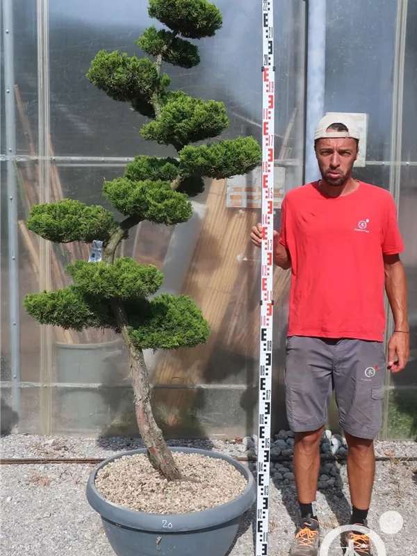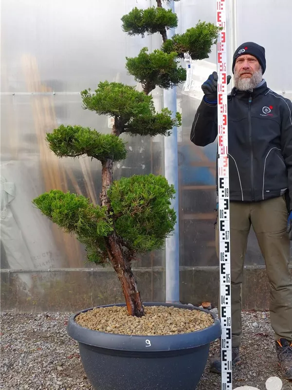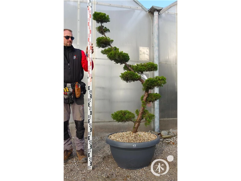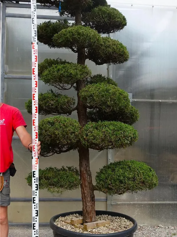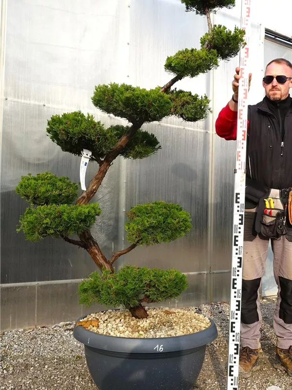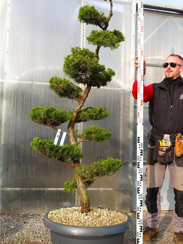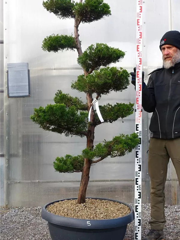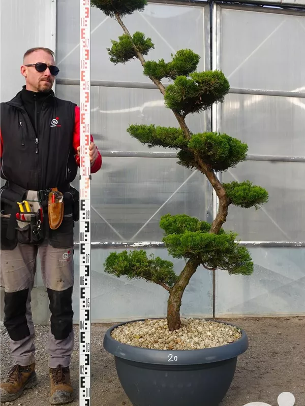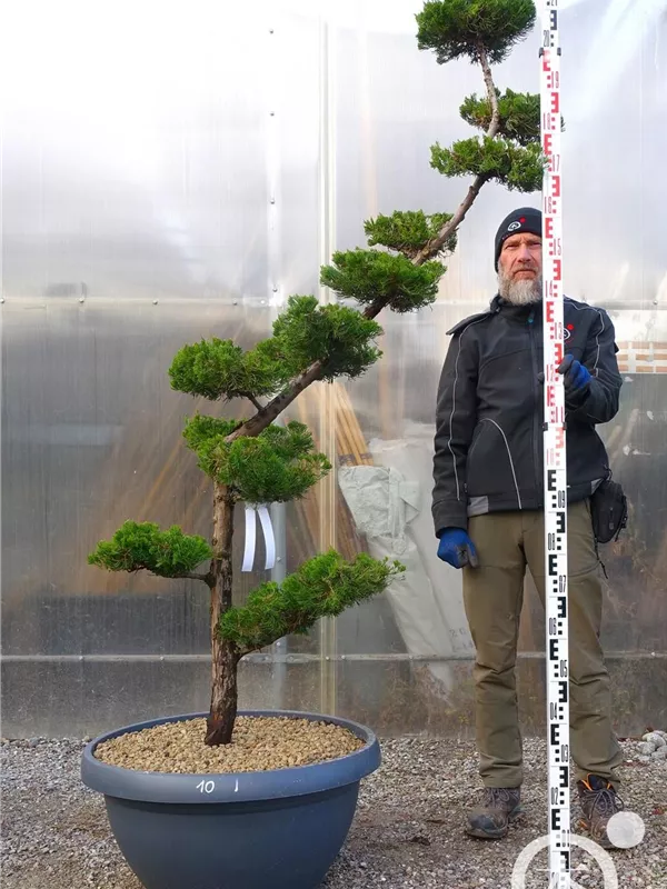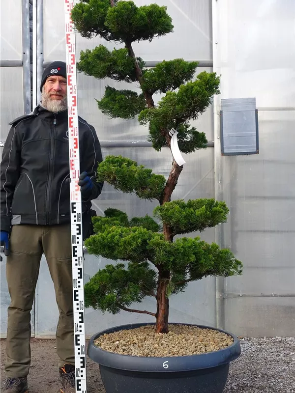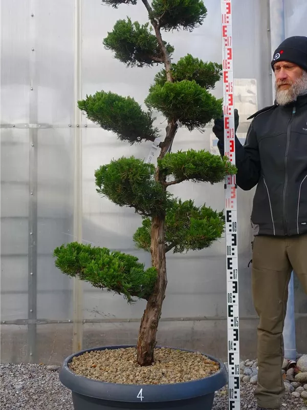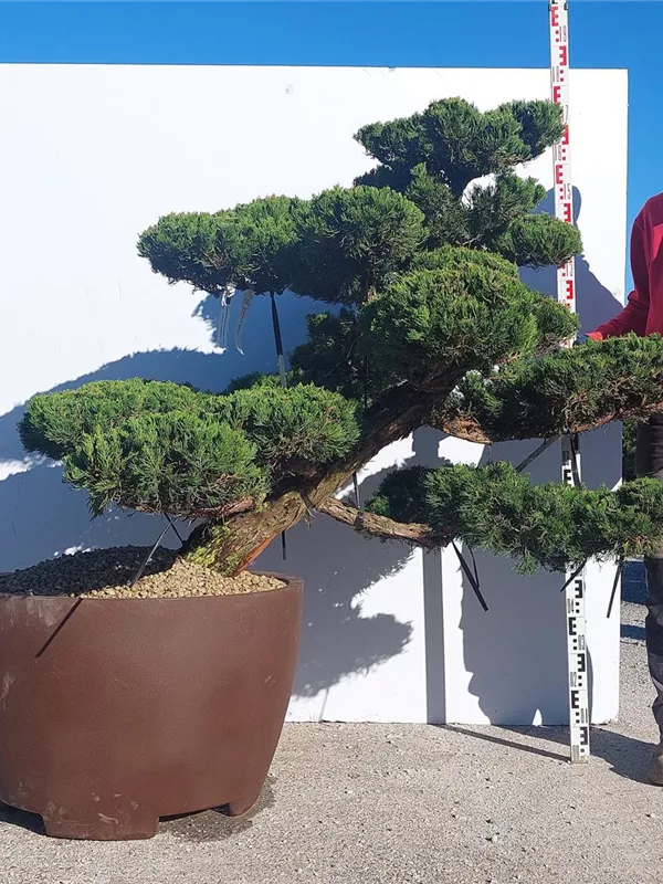 An einem sonnigen Standort mit durchlässiger Erde sind für den Chinesischen Wacholder 'Kaizuka' mit seinem aufrechten und bizarren Wuchs Größen von 6 m und Breiten von 3 m durchaus möglich.