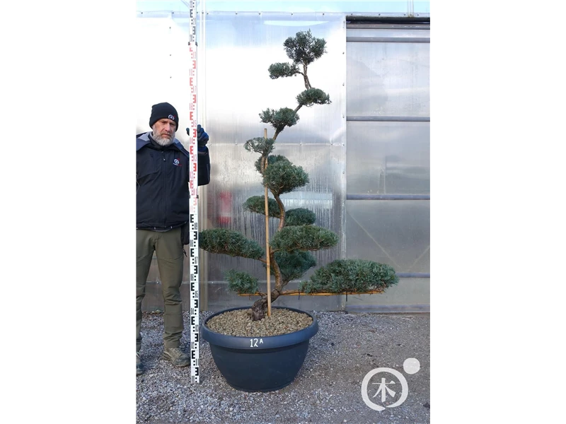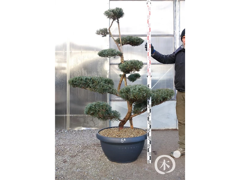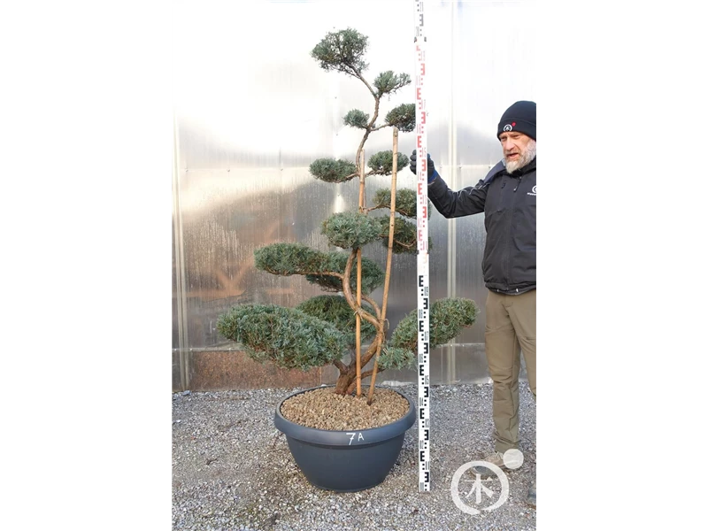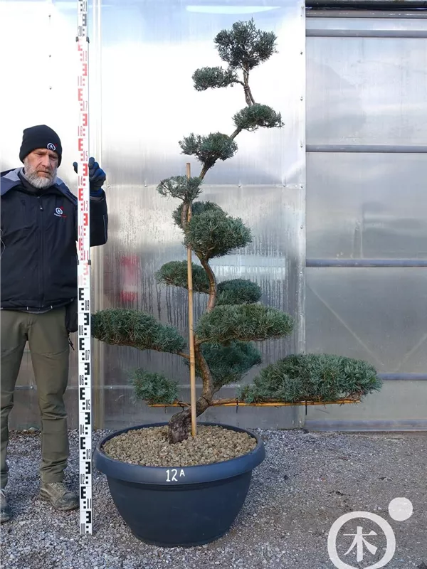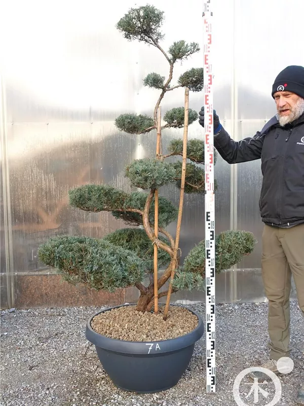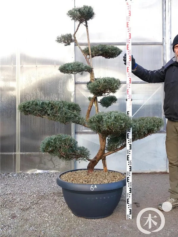 Der Bonsai-Strauchwacholder 'Grey Owl' ist immergrün.