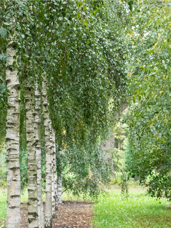 An einem sonnigen Standort mit guter Erde sind für die Sandbirke mit ihrem schlanken, überhängenden und malerischen Wuchs Größen von 30 m und Breiten von 12 m durchaus möglich.
