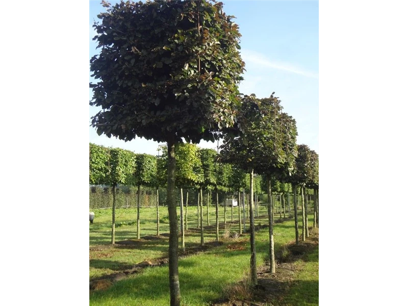 An einem sonnigen bis halbschattigen Standort mit durchlässiger, humoser und nährstoffreicher Erde sind für die Blutbuche 'Atropunicea' mit ihrem aufrechten und breiten Wuchs Größen von 12 m und Breiten von 12 m durchaus möglich.