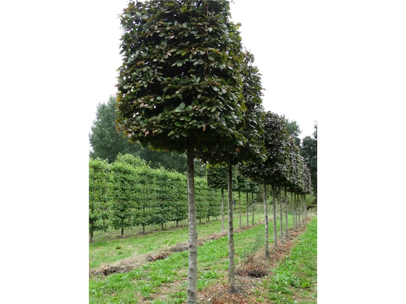 An einem sonnigen bis halbschattigen Standort mit durchlässiger, humoser und nährstoffreicher Erde sind für die Blutbuche 'Atropunicea' mit ihrem aufrechten und breiten Wuchs Größen von 12 m und Breiten von 12 m durchaus möglich.