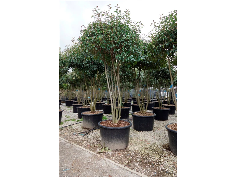 sonnig bis schattig, leuchtend roter Austrieb, immergrün, schnelles Wachstum (20-50 cm/Jahr)