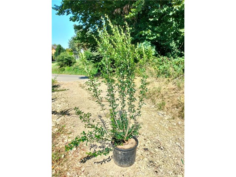 Beschreibung Ein wintergrünes Laubgehölz, dass seinen Platz im Garten haben möchte, zum Beispiel als dekorative Hecke - dafür steht der Schwarzgrüne Liguster 'Atrovirens'. Charakteristisch sind seine dunkelgrünen Blätter mit ihrer lanzettliche Form. Nicht außer Acht zu lassen sind auch die cremeweißen Blüten von Juni bis Juli, die einen angenehmen Duft verbreiten. Besonders bei Bienen und anderen Insekten sind sie beliebt! Ab September trägt dieses Gehölz runde, schwarze Früchte, die ein Blickfang sind, aber auch für Vögel eine gute Nahrungsquelle darstellen.