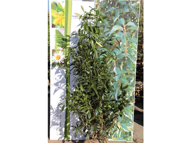Die Aufrechte Lorbeerkirsche 'Herbergii' ist immergrün.