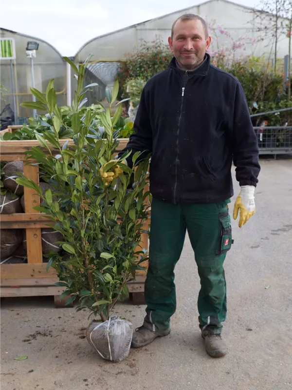 An einem sonnigen bis schattigen Standort mit durchlässiger und nährstoffreicher Erde sind für die Aufrechten Lorbeerkirsche 'Herbergii' mit ihrem kegelförmigen und aufrechten Wuchs Größen von 4 m und Breiten von 3 m durchaus möglich.