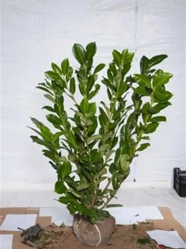 sonnig bis halbschattig, winterhart, immergrün, großlaubigste Sorte für Hecken, Wachstum 20-40 cm/Jahr