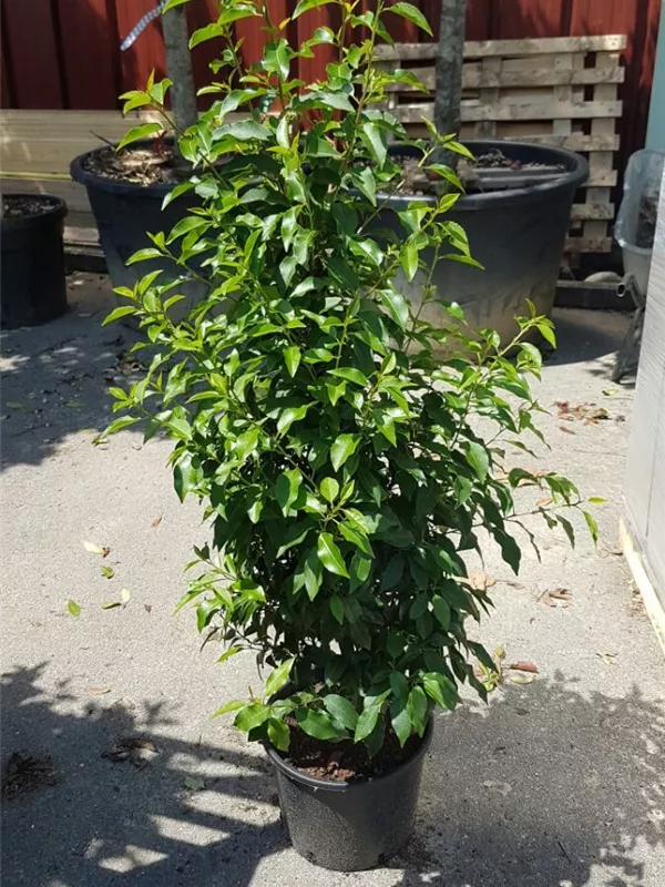 Beschreibung Ein immergrünes Laubgehölz, dass seinen Platz im Garten haben möchte, zum Beispiel als dekorative Hecke - dafür steht die Portugiesische Lorbeerkirsche 'Angustifolia'. Charakteristisch sind ihre dunkelgrünen Blätter mit ihrer lanzettliche Form, sowie dem gezähnten Rand. Nicht außer Acht zu lassen sind auch die weißen Blüten von Juni bis Juli. Ab September trägt dieses Gehölz ovale, schwarze Früchte.