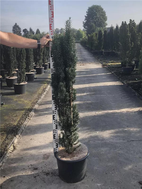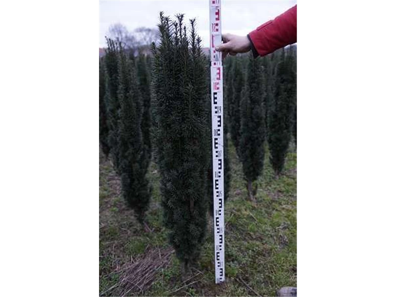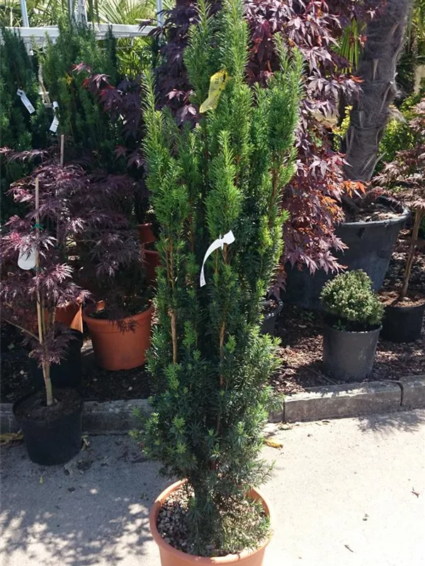 Wuchs Der natürliche Habitus dieser Konifere entspricht dem eines säulenförmig und straff wachsenden Großstrauches mit geschlossener Krone. Ausgewachsen sind Größen von 4 m bis 8 m Höhe und 80 cm bis 2,5 m Breite möglich. Die Wuchsgeschwindigkeit ist relativ gering. Im Jahr kommen etwa 20 cm bis 25 cm in der Höhe und 15 cm bis 20 cm in der Breite dazu.