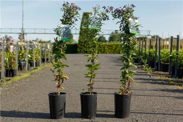 Beschreibung Die Waldrebe 'Fascination'(s) ist eine sommergrüne Kletterpflanze, die ihres gleichen sucht. Charakteristisch sind ihre mittelgrünen Blätter. Nicht außer Acht zu lassen sind auch die violetten Blüten von Juni bis September.
