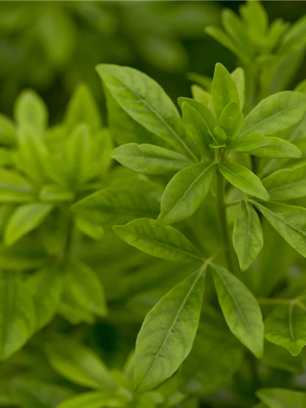 Die gefingerte Form gibt den Blättern, zusammen mit der glänzenden Textur, ihre charakteristische Erscheinung.