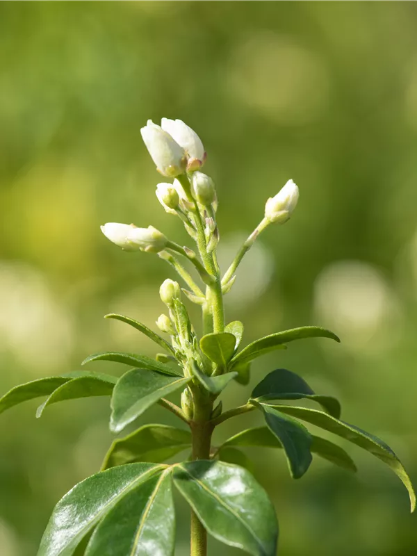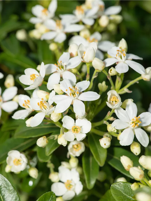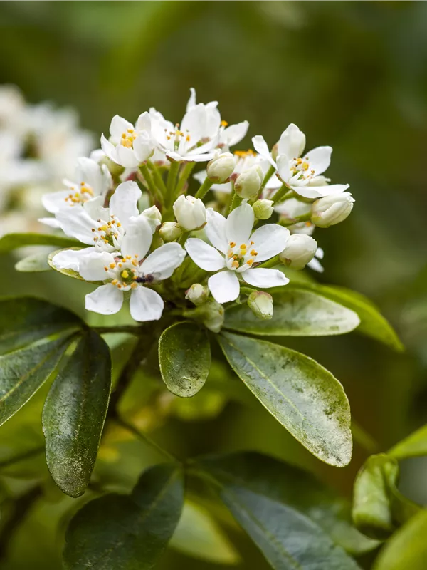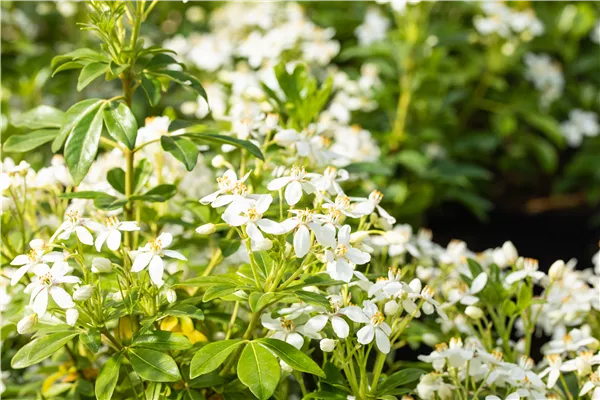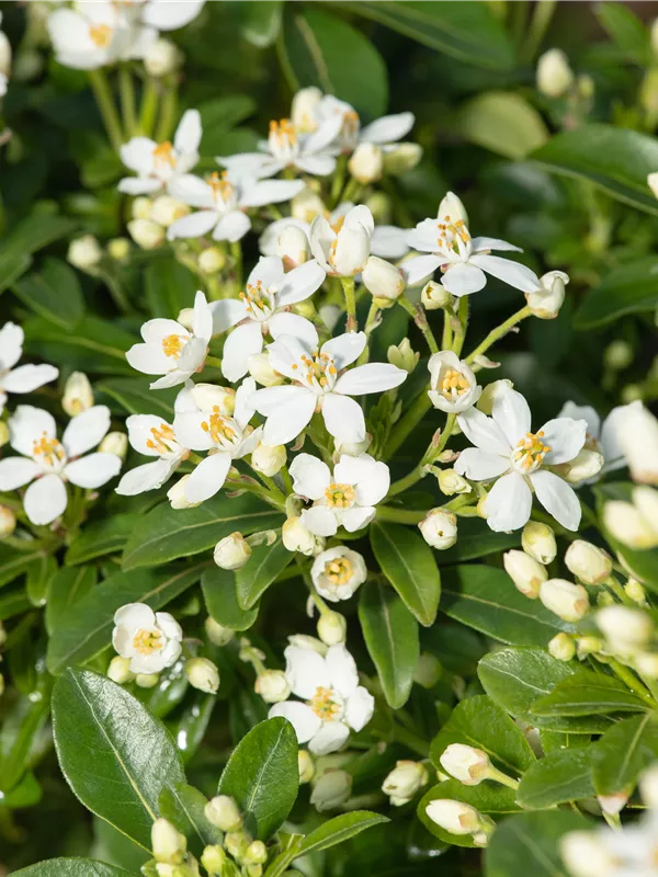 Beschreibung Die Orangenblume ist eine immergrüne Pflanze, die ihres gleichen sucht. Charakteristisch sind ihre hellgrünen, glänzenden Blätter mit ihrer gefingerte Form. Nicht außer Acht zu lassen sind auch die weißen Blüten von März bis Oktober, die einen starken Duft verbreiten. Besonders bei Bienen und anderen Insekten sind sie beliebt! Sie trägt grünbraune Früchte.