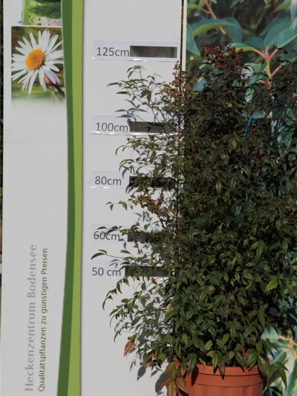 An einem sonnigen bis halbschattigen Standort mit durchlässiger, kalkfreier und saurer Erde sind für den Heiligen Bambus mit seinem aufrechten Wuchs Größen von 2,5 m und Breiten von 1,5 m durchaus möglich.