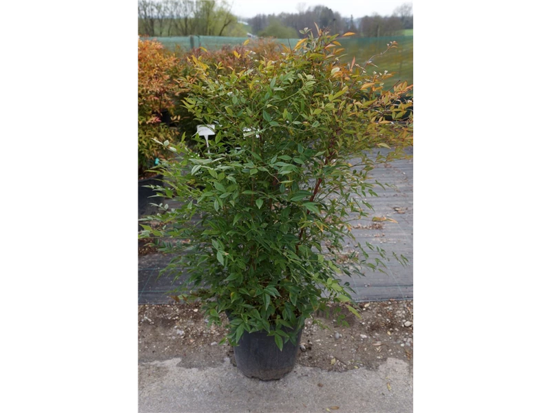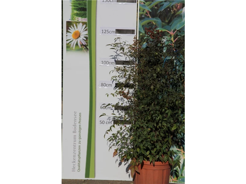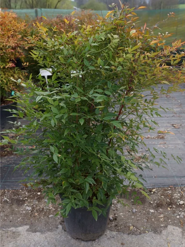 Beschreibung Ein immergrünes Laubgehölz, dass seinen Platz im Garten haben möchte und unter anderem als beeindruckender Solitär zu begeistern weiß - dafür steht der Heilige Bambus. Charakteristisch sind seine grün-roten Blätter mit ihrer lanzettliche Form. Im Herbst zeigt sich dieses Laubgehölz mit schönen purpurroten Laubfarben. Nicht außer Acht zu lassen sind auch die weißen Blüten von Juli bis August. Ab Oktober trägt dieses Gehölz rote Früchte, die ein Blickfang sind.