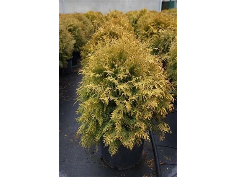 An einem sonnigen bis halbschattigen Standort mit kalkhaltiger, nährstoffreicher, sandiger und lehmiger Erde sind für den Lebensbaum 'Golden Globe' mit seinem kegelförmigen und kugelförmigen Wuchs Größen von 1,5 m und Breiten von 1,5 m durchaus möglich.