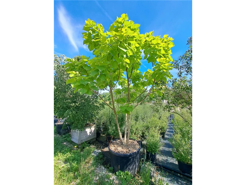 Weitere Informationen Baum, Laub groß, grüngelb, Blüte weiß, Juni -Juli, bis 8 m, sonnig, Frucht lang, Einzelstellung, Park, geschützt,
