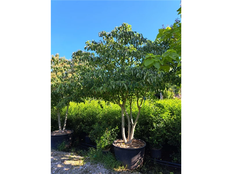 Weitere Informationen Apartes Großgehölz,ausgeprägte Etagenbildung,flache Doldenrispen in