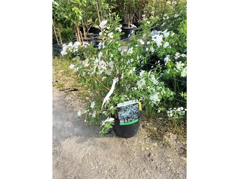 Weitere Informationen Hoher Strauch mit überhängenden Zweigen. Reinweiße überreiche Blüten. Unbedeutende Früchte.