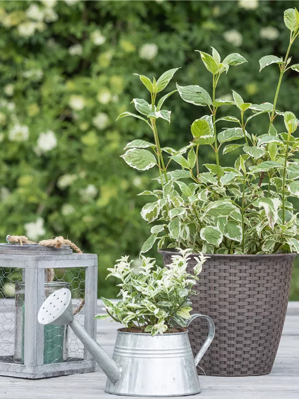 Wasser Da Cornus alba 'Sibirica Variegata' einen hohen Wasserbedarf hat, sollte immer für ausreichend Wasser gesorgt sein.