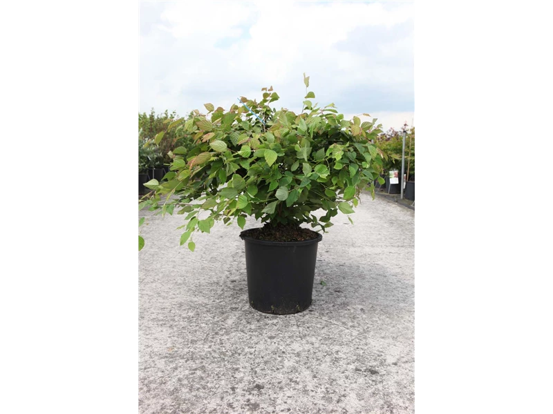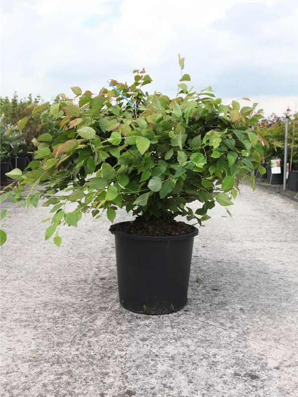 Beschreibung Ein sommergrünes Laubgehölz, dass seinen Platz im Garten haben möchte, aber auch als Kübelpflanze zu begeistern weiß - dafür steht die Niedrige Scheinhasel. Charakteristisch sind ihre hellgrünen Blätter mit ihrer herzartige Form, die zum Austrieb noch kupferbraun gefärbt sind. Im Herbst zeigt sich dieses Laubgehölz mit schönen gelben Laubfarben. Nicht außer Acht zu lassen sind auch die hellgelben Blüten von März bis April.