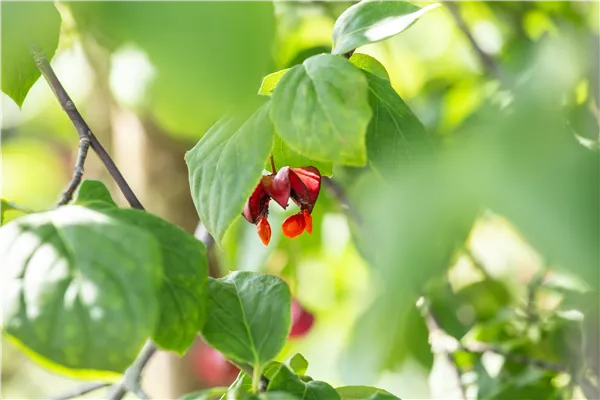 Das Pfaffenhütchen 'Red Cascade' ist sommergrün.