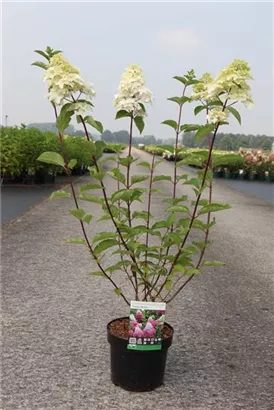 An einem sonnigen bis halbschattigen Standort mit durchlässiger und humoser Erde sind für die Rispenhortensie 'Fraise Melba'® mit ihrem aufrechten Wuchs Größen von 2 m und Breiten von 1,5 m durchaus möglich.