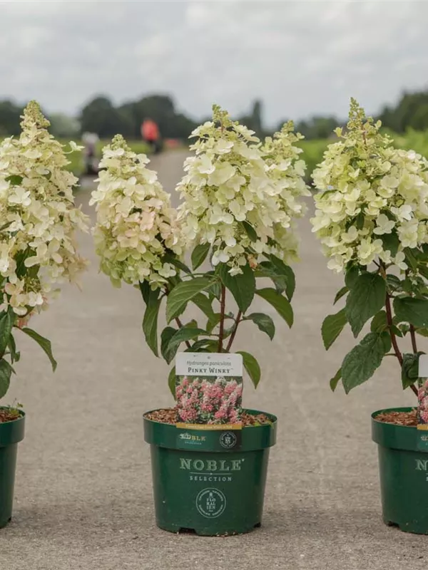 Beschreibung Ein sommergrünes Laubgehölz, dass seinen Platz im Garten haben möchte und unter anderem als beeindruckender Solitär zu begeistern weiß - dafür steht die Rispenhortensie 'Pinky Winky'®. Charakteristisch sind ihre mittelgrünen Blätter mit ihrer lanzettliche Form. Nicht außer Acht zu lassen sind auch die weißen, später rosafarbenen Blüten von Juli bis September, die einen angenehmen Duft verbreiten.